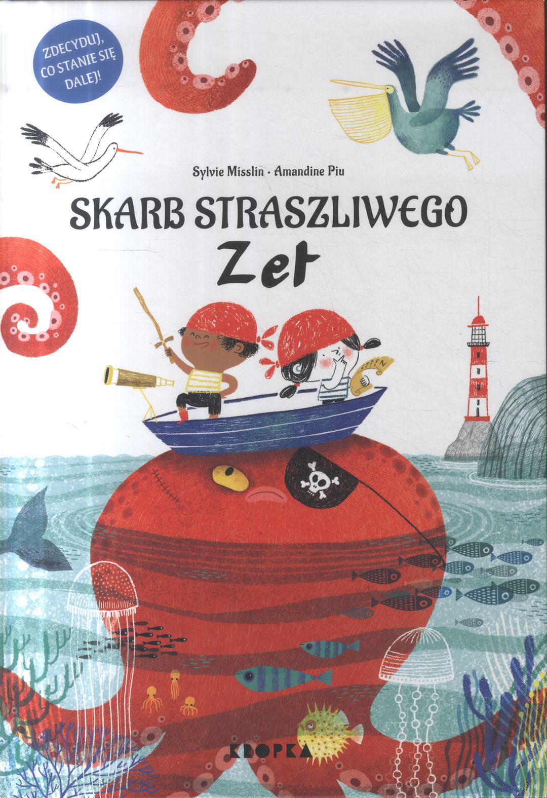 Zdecydujcie sami o dalszych losach bohaterów! Ta książka skrywa więcej niż jedną historię… Mary i Jack wyruszają w pełną przygód podróż na Wyspę Papug, gdzie być może ukryty jest skarb tajemniczego Straszliwego Zet! Para nieustraszonych piratów będzie musiała stawić czoło burzy, gigantycznej ośmiornicy, wielorybowi, syrenom i zmierzyć się z wieloma innymi przeszkodami. Czy znajdą skarb? I kim u licha jest Straszliwy Zet?! Konstrukcja książki umożliwia dziecku decydowanie o dalszych przygodach bohaterów dzięki specjalnym zakładkom i ikonkom umieszczonym w tekście. Czytelnik staje się w ten sposób współautorem opowieści, a to jeszcze większa frajda niż zwykle. Każda lektura to inna morska wyprawa i nowe przygody! Sylvie Misslin mieszka niedaleko Strasburga. Z wykształcenia jest logopedką, ale od dłuższego czasu zajmuje się pisaniem dla dzieci. Tworzy teksty do albumów, wymyśla historie dla najmłodszych, pisze książki edukacyjne i takie, które dzięki sprytnym zakładkom, można czytać wiele razy i na różne sposoby, odkrywając wciąż nowe przygody! Amandine Piu urodziła się w pobliżu Lyonu. Po ukończeniu studiów z zakresu komunikacji wizualnej przeniosła się do Alzacji, do pracowni ilustracji w Haute École des Arts du Rhin w Strasburgu. Od tego czasu tworzy pełne humoru ilustracje do książek, albumów, prasy, gier planszowych, a także na plakaty i pocztówki.